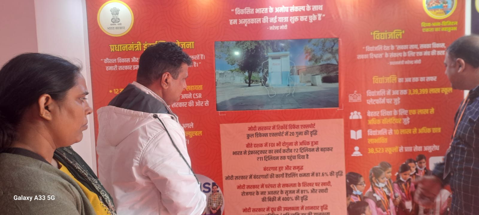 भारत सरकार के जन कल्याण कार्यक्रमों, नीतियों और उपलब्धियों पर केंद्रित यह प्रदर्शनी उद्यमिता और स्वरोजगार को बढ़ावा देने के उद्देश्य से की गई पहलों पर प्रकाश डालती है। ये प्रयास मुद्रा योजना, पीएम विश्वकर्मा योजना, पीएमईजीपी और क्रेडिट गारंटी फंड योजना जैसी योजनाओं के माध्यम से साकार किए जा रहे हैं।
